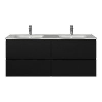 | Bellanti Gisella/Glass badmeubel 140x46 4 softclose laden zwart mat greeploos glazen wastafel dubbel wit met 2 kraangaten |