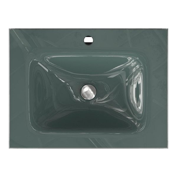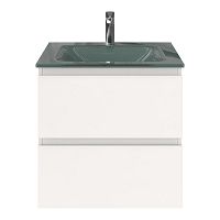 | Bellanti Gisella/Glass badmeubel 60x46 2 softclose laden wit hoogglans greeploos glazen wastafel zilvergrijs met 1 kraangat |