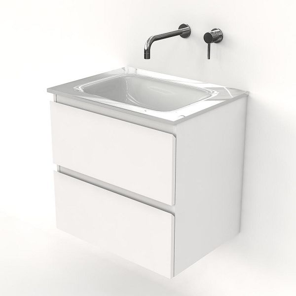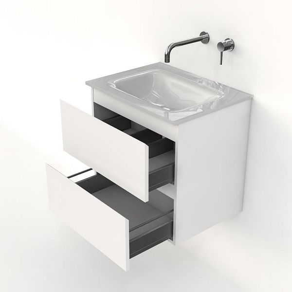 | Bellanti Gisella/Glass badmeubel 60x46 2 softclose laden wit hoogglans greeploos glazen wastafel wit zonder kraangaten |