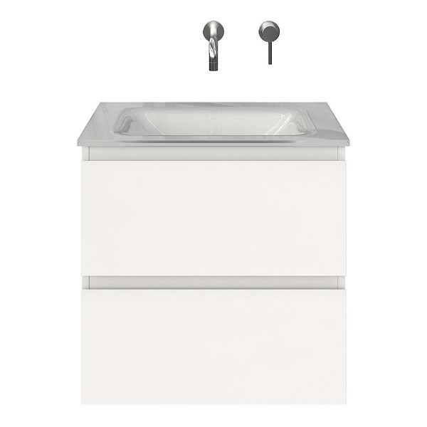 | | Bellanti Gisella/Glass badmeubel 60x46 2 softclose laden wit hoogglans greeploos glazen wastafel wit zonder kraangaten |