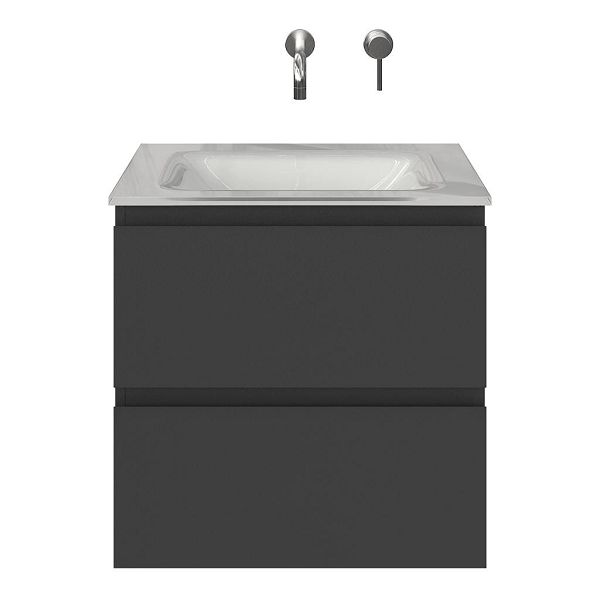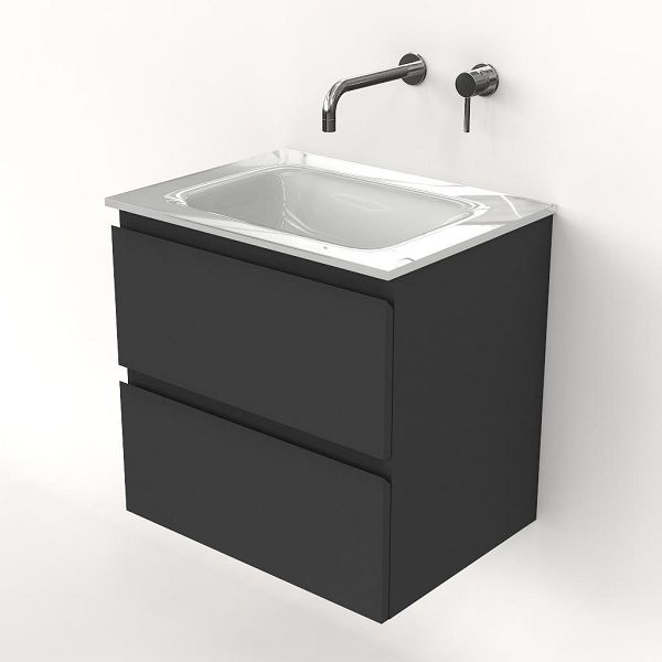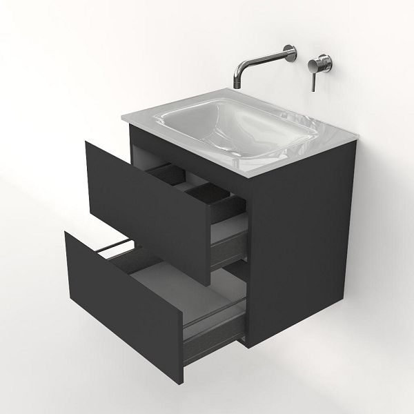 | | Bellanti Gisella/Glass badmeubel 60x46 2 softclose laden antraciet mat greeploos glazen wastafel wit zonder kraangaten |