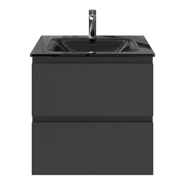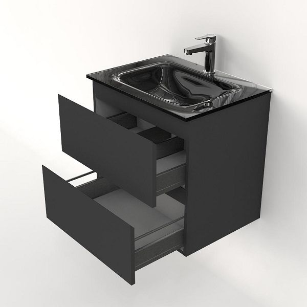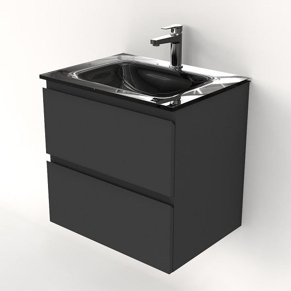 | Bellanti Gisella/Glass badmeubel 60x46 2 softclose laden antraciet mat greeploos glazen wastafel zwart met 1 kraangat |