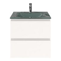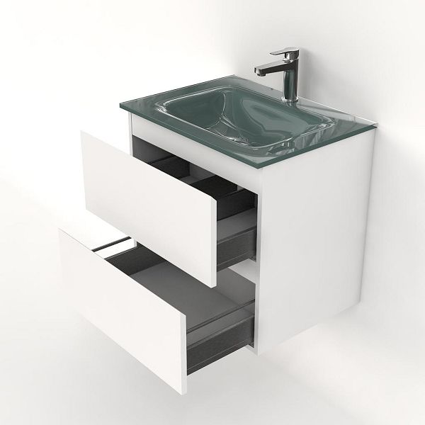 | Bellanti Gisella/Glass badmeubel 60x46 2 softclose laden wit mat greeploos glazen wastafel zilvergrijs met 1 kraangat |