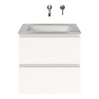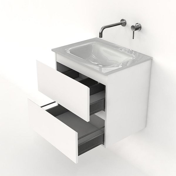 | Bellanti Gisella/Glass badmeubel 60x46 2 softclose laden wit mat greeploos glazen wastafel wit zonder kraangaten |