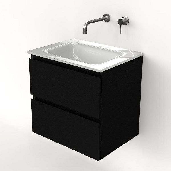 | Bellanti Gisella/Glass badmeubel 60x46 2 softclose laden zwart mat greeploos glazen wastafel wit zonder kraangaten |