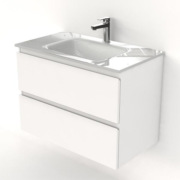 | Bellanti Gisella/Glass badmeubel 80x46 2 softclose laden wit mat greeploos glazen wastafel wit met 1 kraangat |