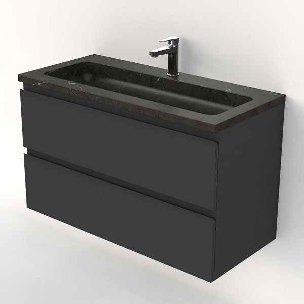 | | Bellanti Gisella/Square badmeubel 100x46 2 softclose laden antraciet mat greeploos natuursteen wastafel blue stone met 1 kraangat |