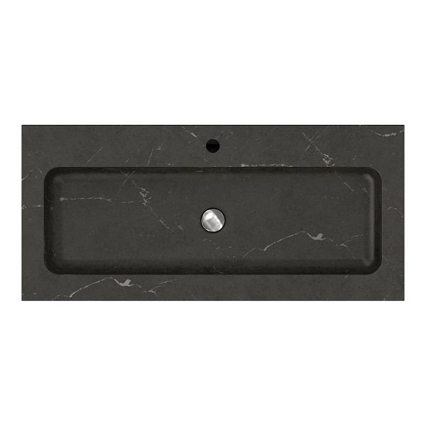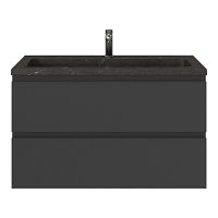 Greeploos badkamermeubel in de kleur antraciet mat is 100 cm breed. De wastafel is vervaardig in natuursteen en heeft de kleur blue stone. Dit badkamermeubel met deze wastafel is leverbaar tussen de 60 cm t/m 120 cm