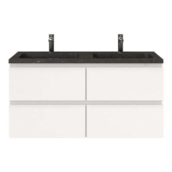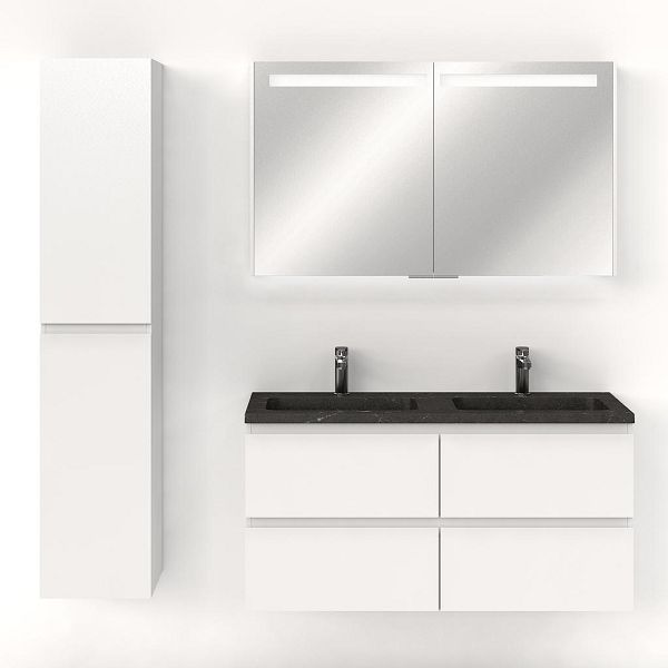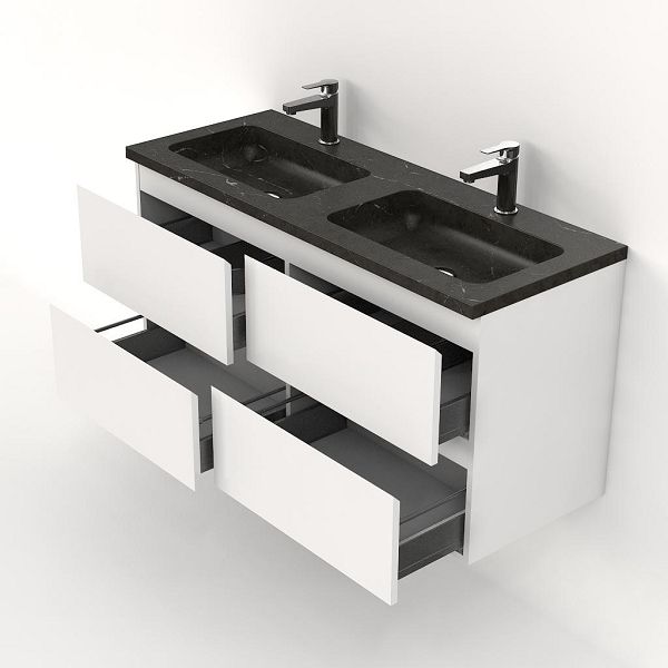 | | Bellanti Gisella/Square badmeubel 120x46 4 softclose laden wit hoogglans greeploos natuursteen wastafel dubbel blue stone met 2 kraangaten |