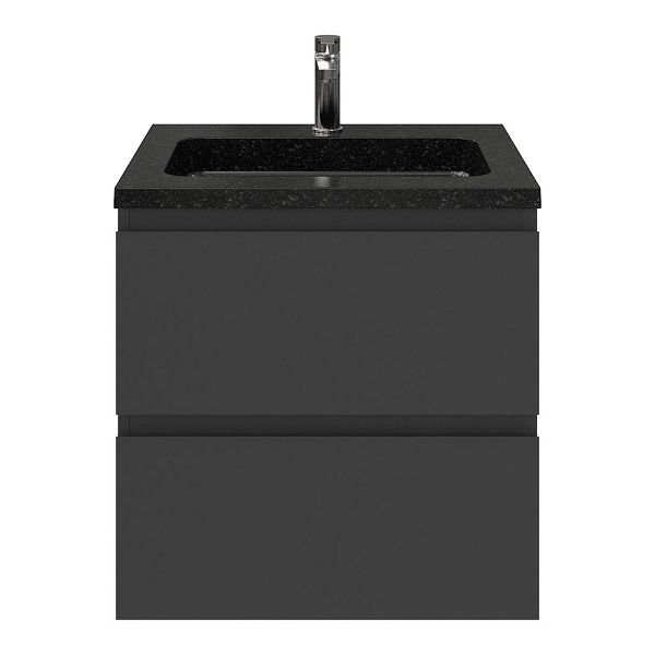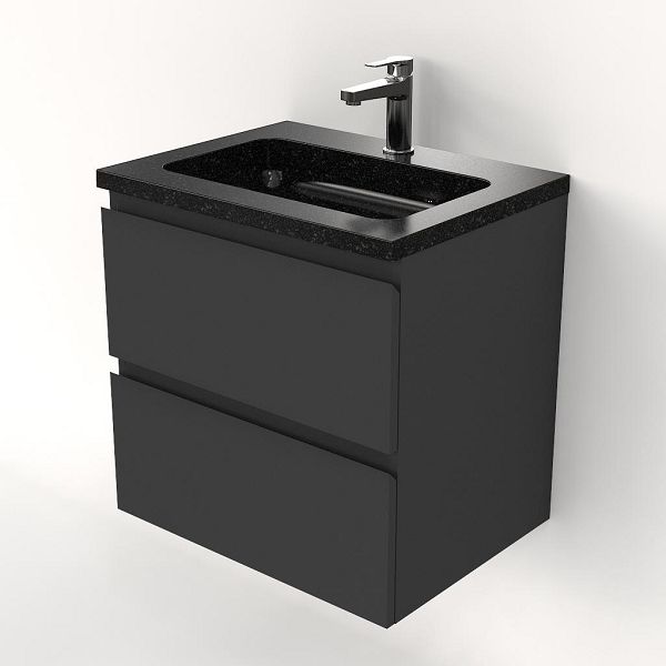 | | Bellanti Gisella/Square badmeubel 60x46 2 softclose laden antraciet mat greeploos natuursteen wastafel shanxi black met 1 kraangat |