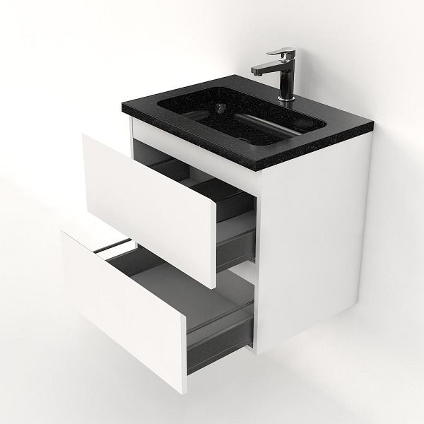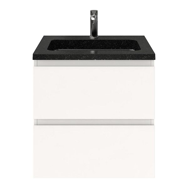 | | Bellanti Gisella/Square badmeubel 60x46 2 softclose laden wit mat greeploos natuursteen wastafel shanxi black met 1 kraangat |