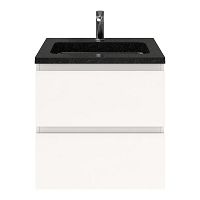 | Bellanti Gisella/Square badmeubel 60x46 2 softclose laden wit mat greeploos natuursteen wastafel shanxi black met 1 kraangat |