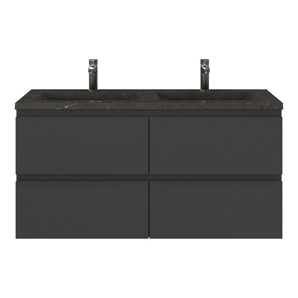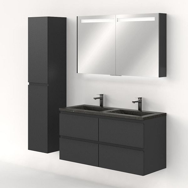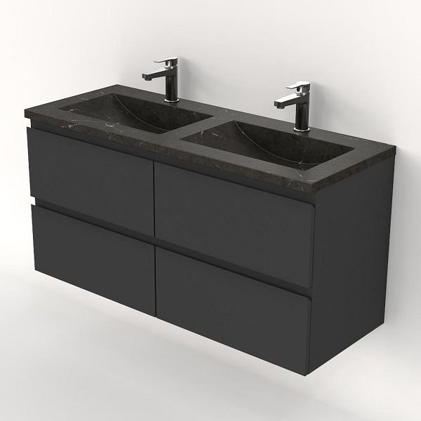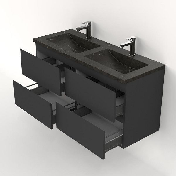 | Bellanti Gisella/Faro Stone badmeubel 120x46 4 softclose laden antraciet mat greeploos natuursteen wastafel dubbel blue stone met 2 kraangaten |