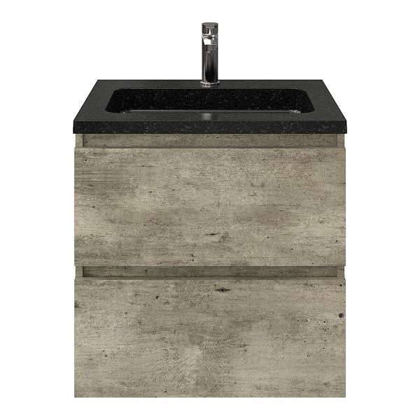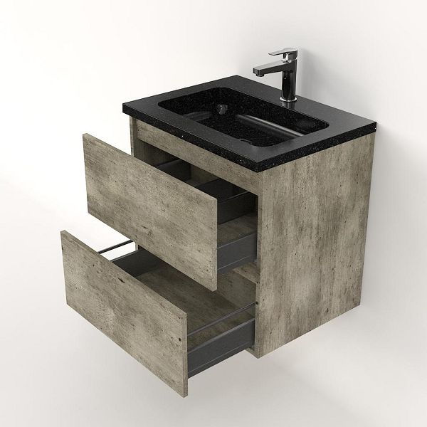 | | Bellanti Elena/Square badmeubel 60x46 2 softclose laden steigerhout licht grijs greeploos natuursteen wastafel shanxi black met 1 kraangat |