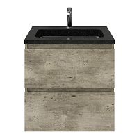 | Bellanti Elena/Square badmeubel 60x46 2 softclose laden steigerhout licht grijs greeploos natuursteen wastafel shanxi black met 1 kraangat |