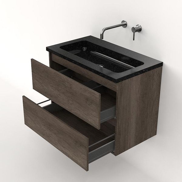 | | Bellanti Elena/Square badmeubel 80x46 2 softclose laden olm donker grijs greeploos natuursteen wastafel shanxi black zonder kraangaten |