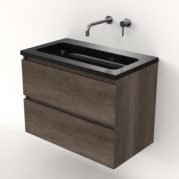 | Bellanti Elena/Square badmeubel 80x46 2 softclose laden olm donker grijs greeploos natuursteen wastafel shanxi black zonder kraangaten |