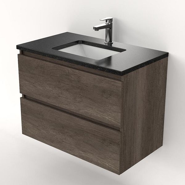 Dit prachtige badkamermeubel van Bellanti Elena in fraaie houtstructuur olm donker grijs is een moderne praktische toevoeging voor uw badkamer. Het meubel van 80 cm breed is er ook , met deze wastafel tussen de 60 cm t/m 120 cm. De wastafel prachtige heeft een prachtige natuurstenenplaat van graniet in zwarte kleur met een keramische wastafel in verzonken, geeft het geheel een luxe uitstraling.