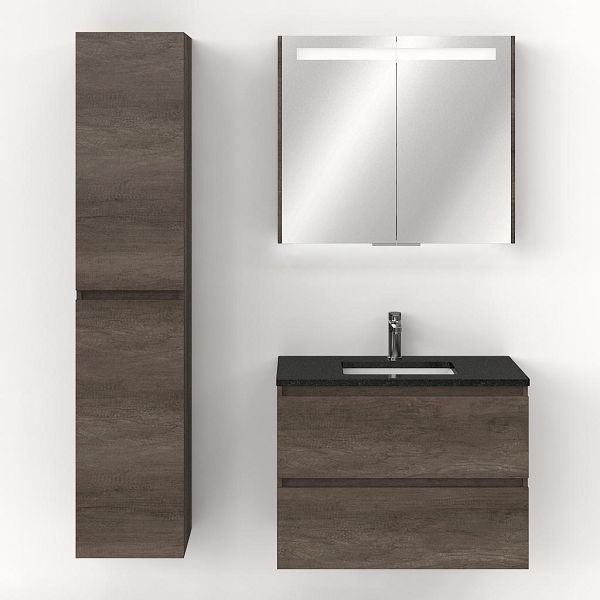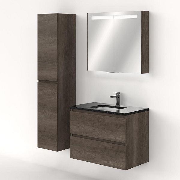 | Bellanti Elena/Ciro badmeubel 80x46 2 softclose laden olm donker grijs greeploos keramische wastafel wit met 1 kraangat |