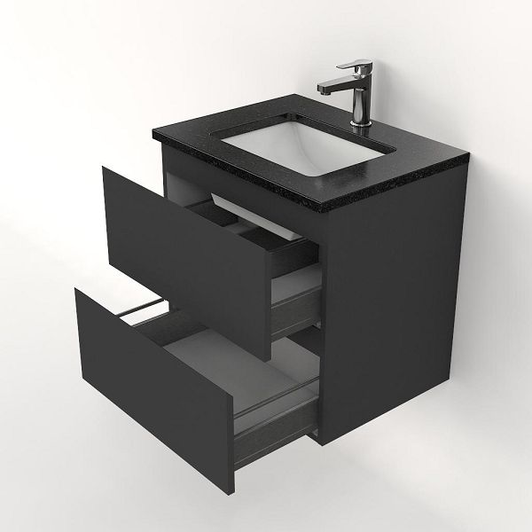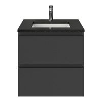 Greeploos badkamermeubel in de kleur antraciet mat is 60 cm breed. De wastafel is vervaardig in keramiek en heeft de kleur wit keramiek. Dit badkamermeubel met deze wastafel is leverbaar in 60 cm en 80 cm