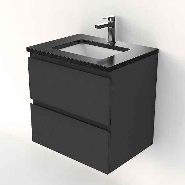 | Bellanti Gisella/Ciro badmeubel 60x46 2 softclose laden antraciet mat greeploos keramische wastafel wit met 1 kraangat |