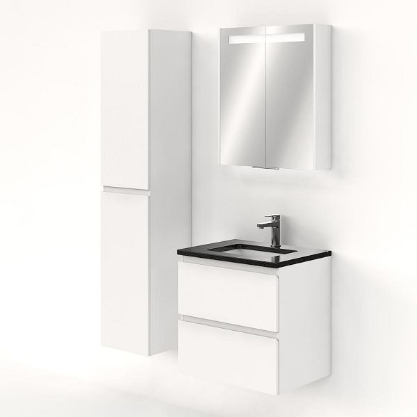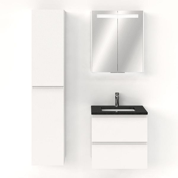 Greeploos badkamermeubel in de kleur wit mat is 60 cm breed. De wastafel is vervaardig in keramiek en heeft de kleur wit keramiek. Dit badkamermeubel met deze wastafel is leverbaar in 60 cm en 80 cm