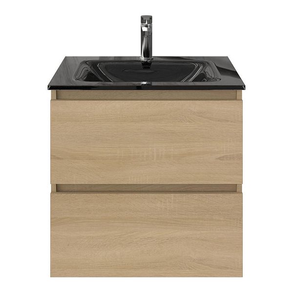 | Bellanti Elena/Glass badmeubel 60x46 2 softclose laden eiken licht greeploos glazen wastafel zwart met 1 kraangat |