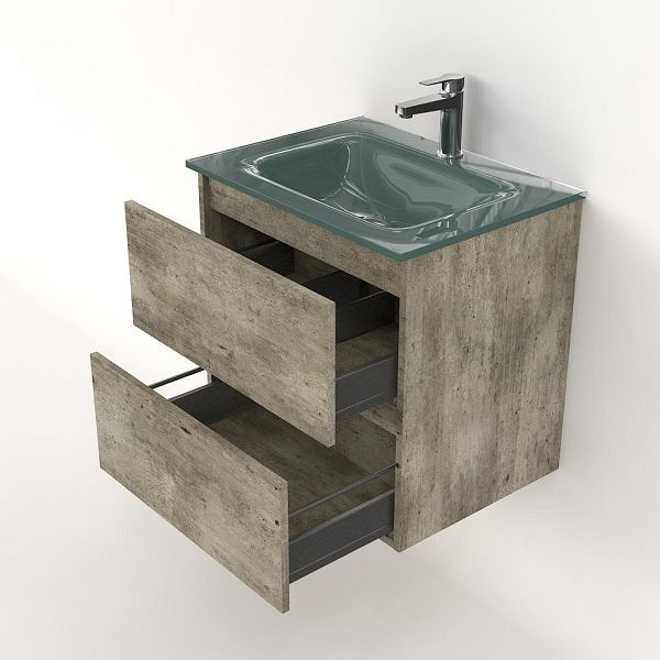 | Bellanti Elena/Glass badmeubel 60x46 2 softclose laden steigerhout licht grijs greeploos glazen wastafel zilvergrijs met 1 kraangat |