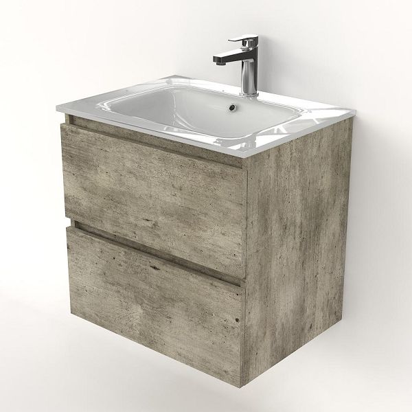 | Bellanti Elena/Glass badmeubel 60x46 2 softclose laden steigerhout licht grijs greeploos glazen wastafel wit met 1 kraangat |