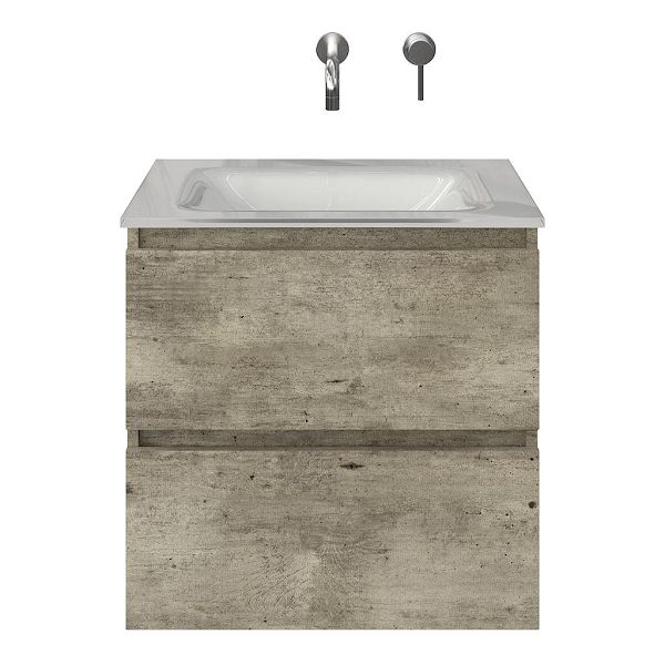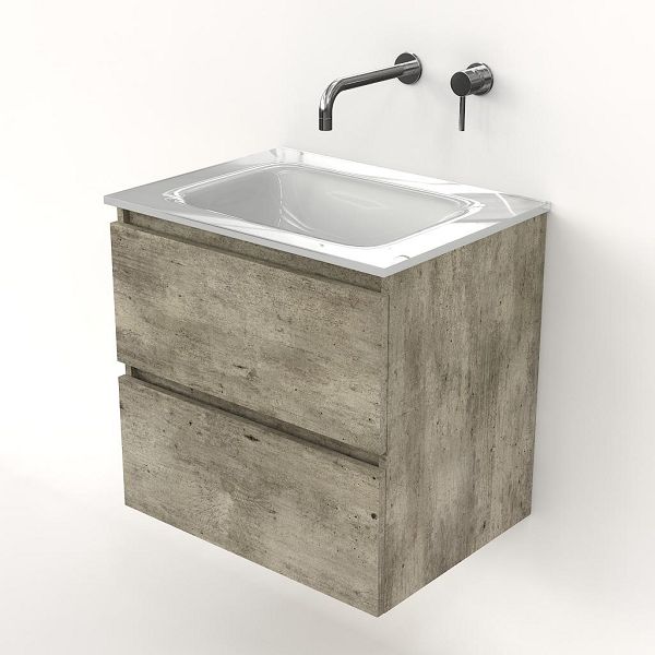 | | Bellanti Elena/Glass badmeubel 60x46 2 softclose laden steigerhout licht grijs greeploos glazen wastafel wit zonder kraangaten |