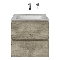 Greeploos badkamermeubel in de kleur steigerhout licht grijs is 60 cm breed. De wastafel is vervaardig in glas en heeft de kleur wit. Dit badkamermeubel met deze wastafel is leverbaar tussen de 60 cm t/m 120 cm