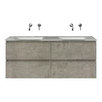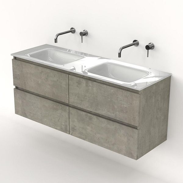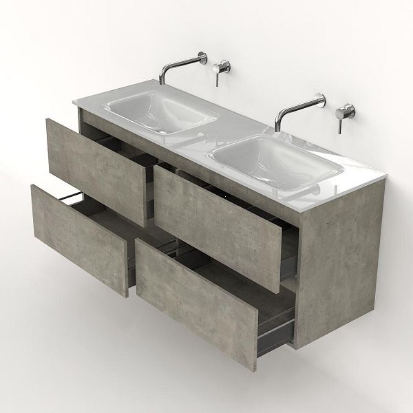 | | Bellanti Elena/Glass badmeubel 140x46 4 softclose laden beton greeploos glazen wastafel dubbel wit zonder kraangaten |