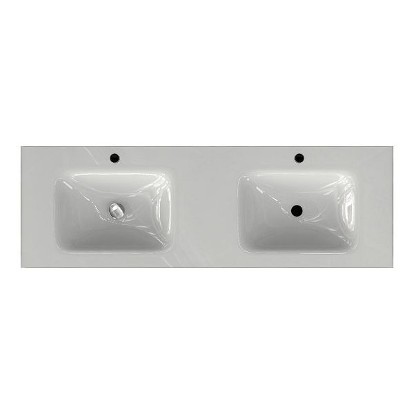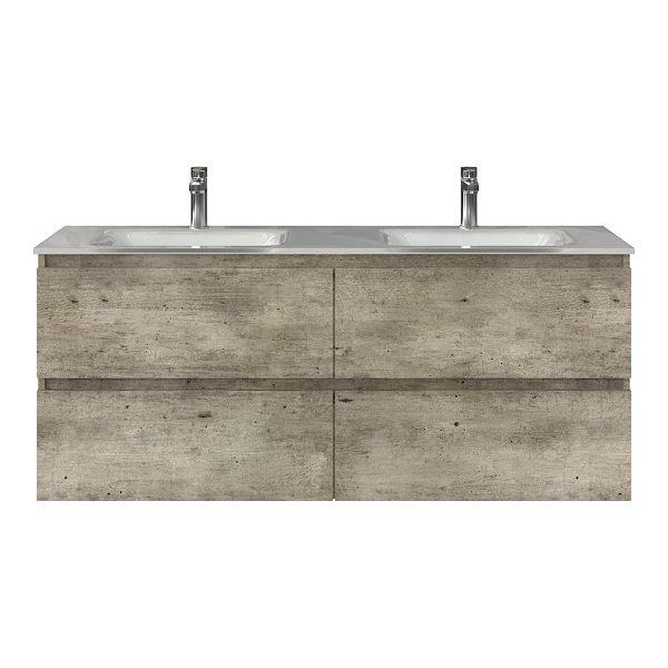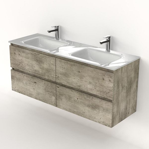 | Bellanti Elena/Glass badmeubel 140x46 4 softclose laden steigerhout licht grijs greeploos glazen wastafel dubbel wit met 2 kraangaten |