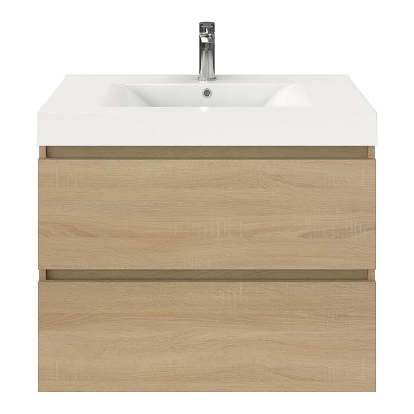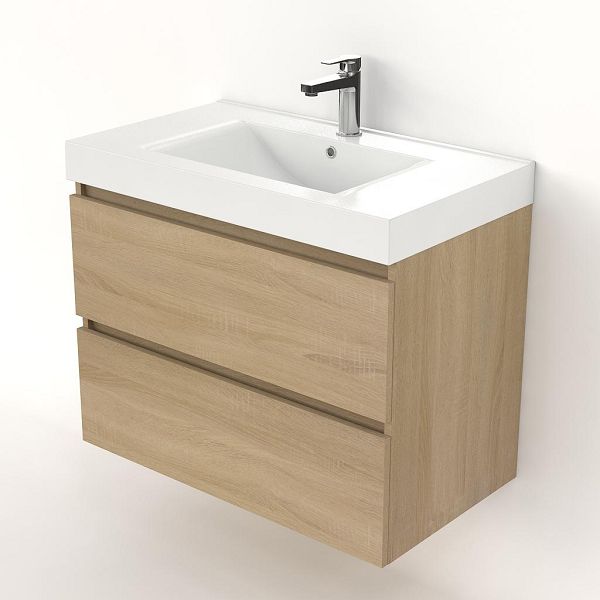 | Bellanti Elena/Wave badmeubel 80x46 2 softclose laden eiken licht greeploos polystone wastafel wit met 1 kraangat |