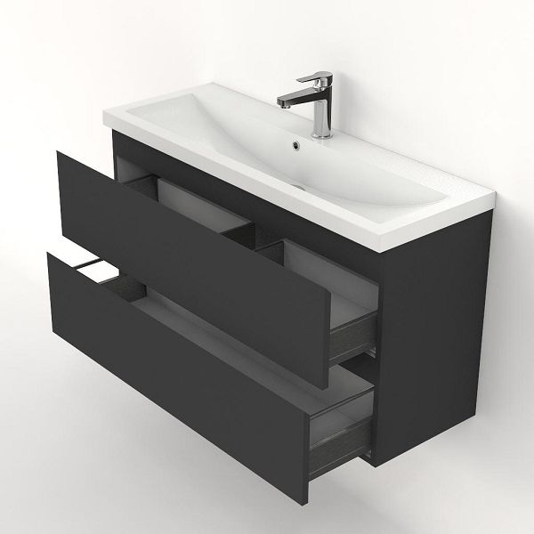 | Bellanti Secca/Lidia ondiep badmeubel 100x36 2 softclose laden antraciet mat greeploos polystone wastafel wit met 1 kraangat |