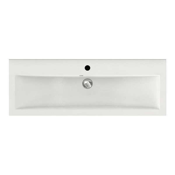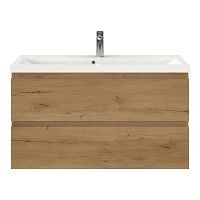 Ondiepe greeploos badkamermeubel in de kleur eiken natuur. Badmeubel is praktisch voor een compact badkamer. Het meubel van 100 cm breed is er.  De wastafel is vervaardig in polystone en heeft de kleur wit. Dit badkamermeubel met deze wastafel is leverbaar tussen de 60 cm t/m 100 cm.
