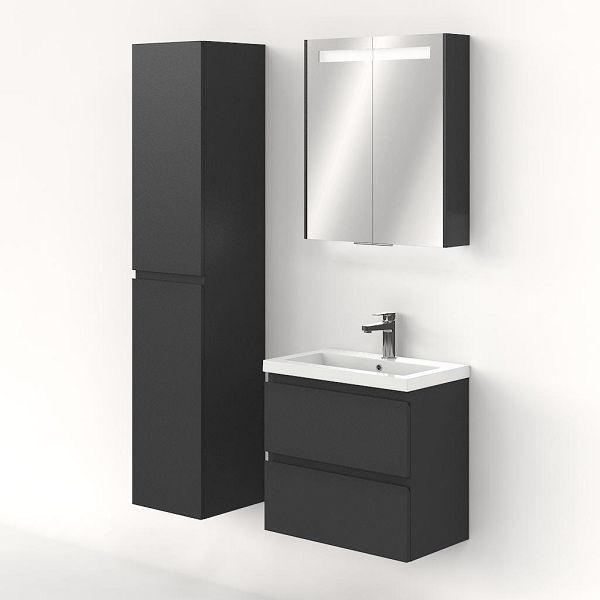 Ondiepe greeploos badkamermeubel in de kleur antraciet mat. Badmeubel is praktisch voor een compact badkamer. Het meubel van 60 cm breed is er. De wastafel is vervaardig in polystone en heeft de kleur wit. Dit badkamermeubel met deze wastafel is leverbaar tussen de 60 cm t/m 120 cm.