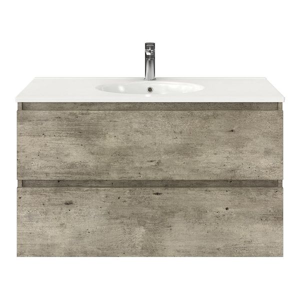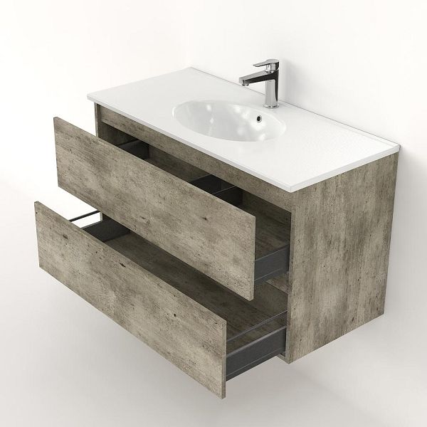 | | Bellanti Elena/Ovale badmeubel 100x46 2 softclose laden steigerhout licht grijs greeploos keramische wastafel wit met 1 kraangat |