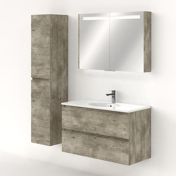 Dit prachtige badkamermeubel van Bellanti Elena met fraai houtstructuur in de kleur steigerhout licht grijs is een moderne en praktische toevoeging van uw badkamer. Het meubel van 100 cm breed is er ook , met deze wastafel tussen de 60 cm t/m 100 cm. De wastafel vervaardig in keramiek met prachtige wit keramiek kleur maakt het een luxe uitstraling, met zijn ronden lijnen.