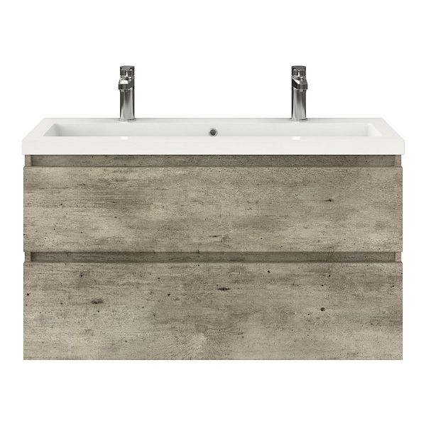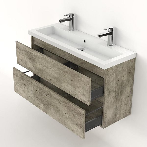 | Bellanti Fabia/Esta ondiep badmeubel 100x36 2 softclose laden steigerhout licht grijs greeploos polystone wastafel wit met 2 kraangaten |