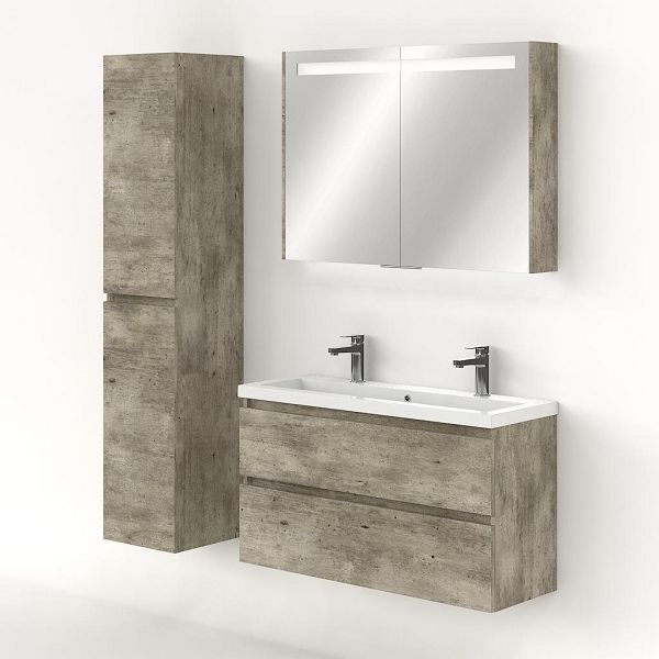Ondiepe greeploos badkamermeubel in de kleur steigerhout licht grijs. Badmeubel is praktisch voor een compact badkamer. Het meubel van 100 cm breed is er. De wastafel is vervaardig in polystone en heeft de kleur wit. Dit badkamermeubel met deze wastafel is leverbaar tussen de 60 cm t/m 100 cm.