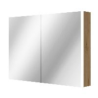 Greeploos badkamermeubel in de kleur eiken natuur is 100 cm breed. Op het meubel ligt een afdekplaat met een gelamineerde toplaag of volledig gemaakt van natuursteen.