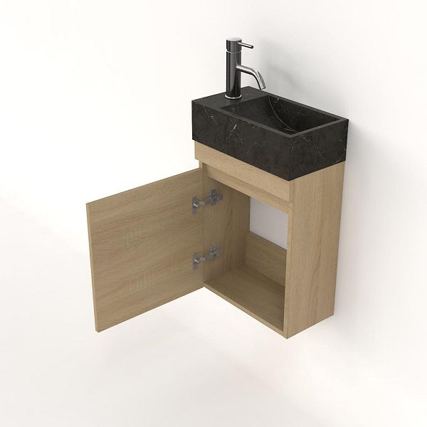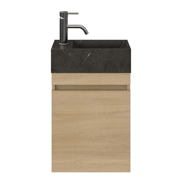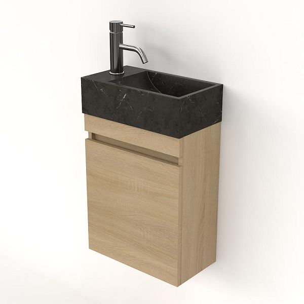 | Bellanti Bona/Stone fonteinmeubel 40x22cm licht eiken met natuurstenen fontein Shanxi met kraangat links |