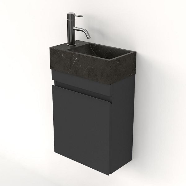 | | Bellanti bona/stone fonteinmeubel 40x22cm mat antraciet met natuurstenen fontein Shanxi met kraangat links |