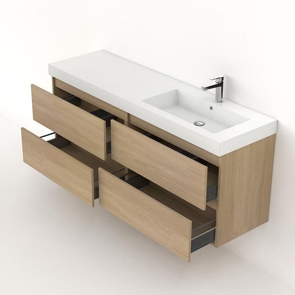 | Bellanti Elena/Esta badmeubel 160x46 4 softclose laden eiken licht greeploos polystone enkele wastafel rechts wit met 1 kraangat |