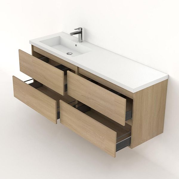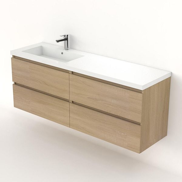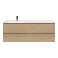 | Bellanti Elena/Esta badmeubel 160x46 4 softclose laden eiken licht greeploos polystone enkele wastafel links wit met 1 kraangat |