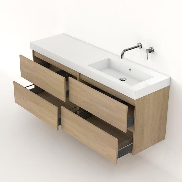 | | Bellanti Elena/Esta badmeubel 160x46 4 softclose laden eiken licht greeploos polystone enkele wastafel rechts wit zonder kraangat |