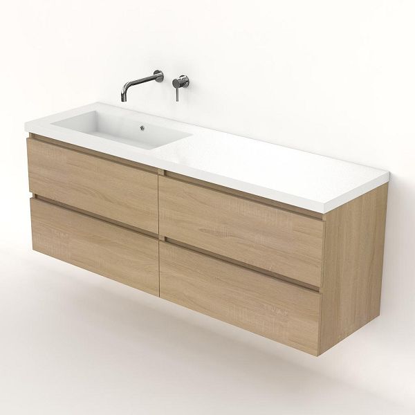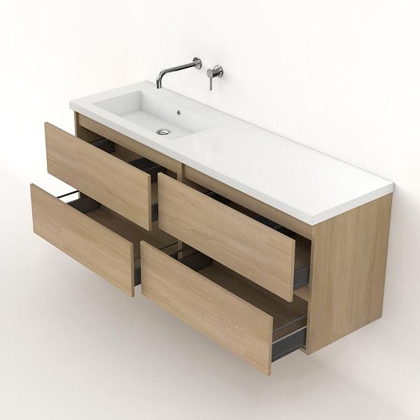 | Bellanti Elena/Esta badmeubel 160x46 4 softclose laden eiken licht greeploos polystone enkele wastafel links wit zonder kraangat |