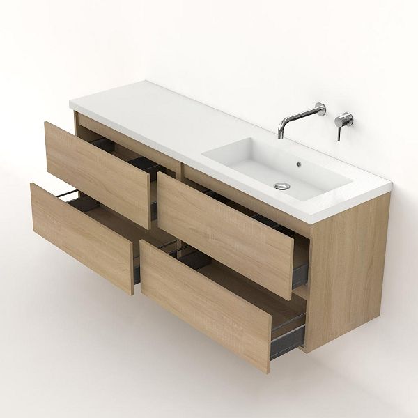| | Bellanti Elena/Esta badmeubel 160x46 4 softclose laden eiken licht greeploos polystone enkele wastafel rechts wit zonder kraangat |