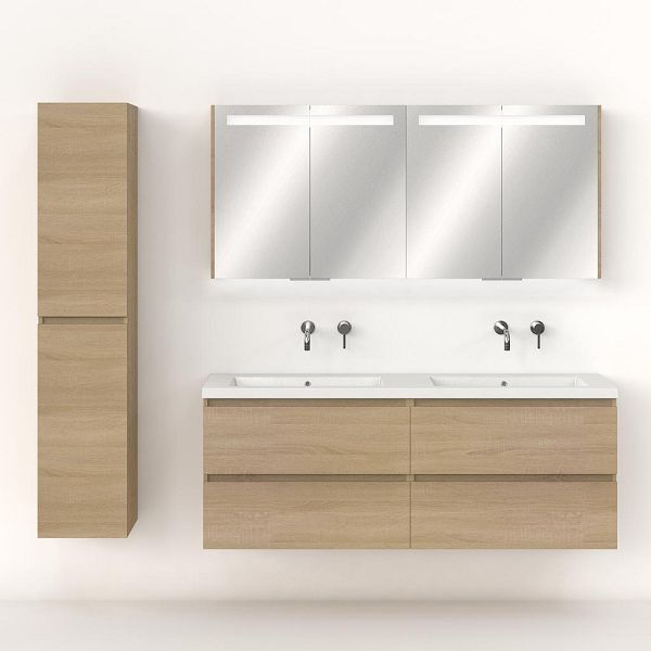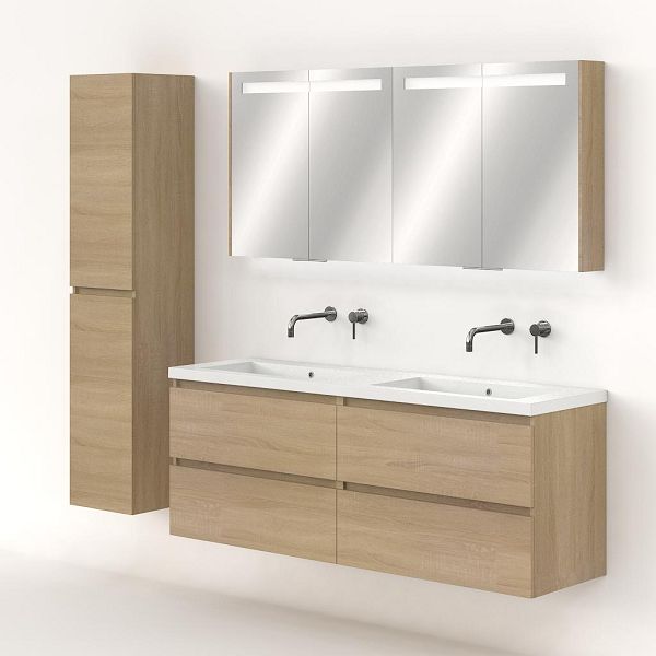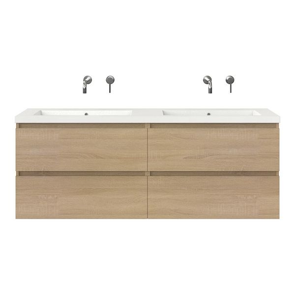 | | Bellanti Elena/Esta badmeubel 160x46 4 softclose laden eiken licht greeploos polystone dubbele wastafel wit zonder kraangaten |